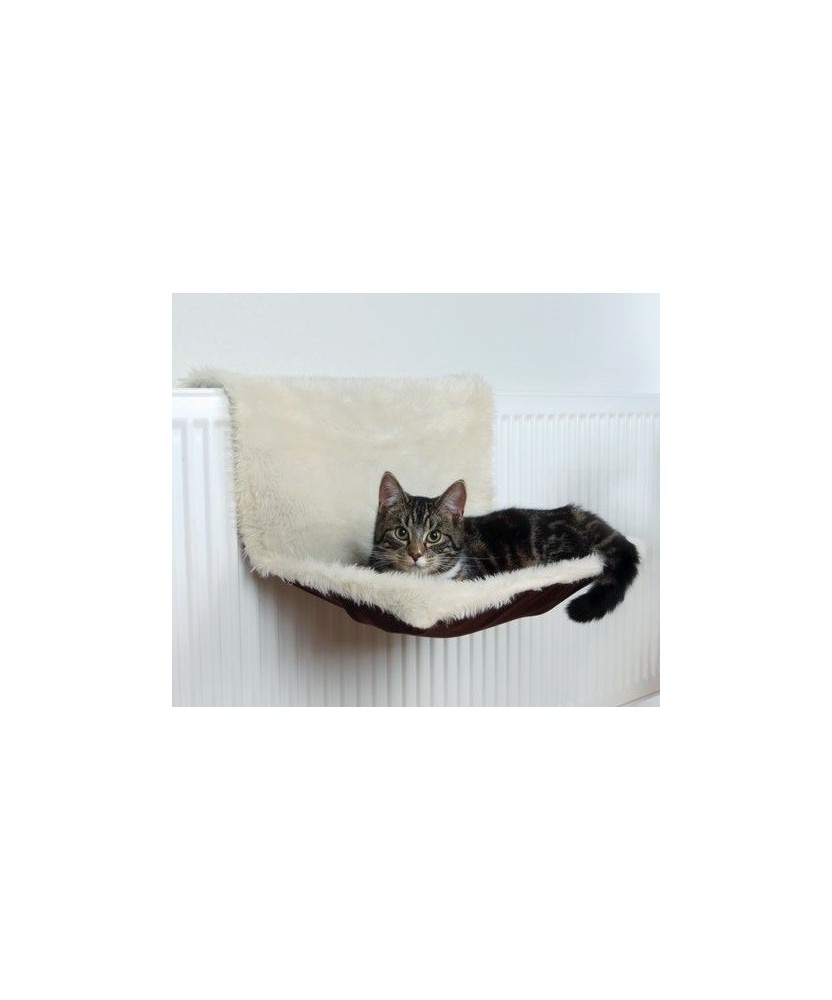 Graziosa amaca per gatti da appendere al calorifero, con gancio regolabile, realizzata in materiali di qualità, con struttura in metallo, fodera in poliestere. Interno in peluche a pelo lungo beige chiaro e esterno in similcamoscio marrone. Adatta ad ogni tipo di calorifero. Quest'amaca sarà il rifugio perfetto per il tuo Micio. Si sa che i gatti amano il tepore e la comodità: questo allora è il prodotto che fa per lui! Realizzata con struttura in metallo e con gancio regolabile, è adatta a qualsiasi tipo di calorifero abbiate in casa, perfetta anche per i gatti più vivaci e che amano particolarmente saltare e correre, in quanto garantisce una grande stabilità. Grazie al morbido tessuto in peluche con microfibra di cui è realizzata, trattiene tutto il calore, garantendo al tuo Micio un riposo confortevole e tranquillo. L'elegante design dai colori neutri, nella calde tonalità del marrone e del crema, ben si adatta a qualsiasi tipo di arredamento domestico. Dimensioni: 45 x 26 x 31 cm.