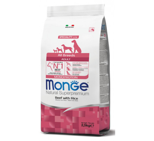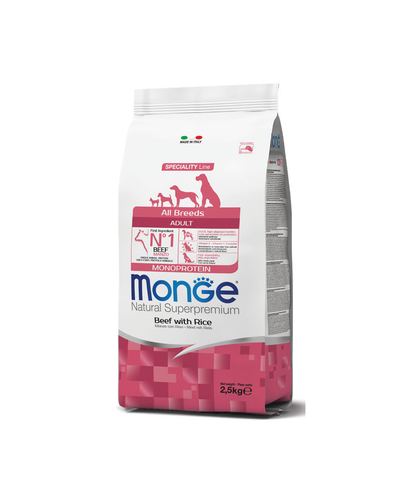 Monge Natural Superpremium per Cane Adult All Breeds con Manzo e Riso da 2,5 Kg