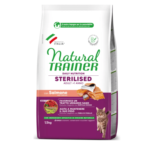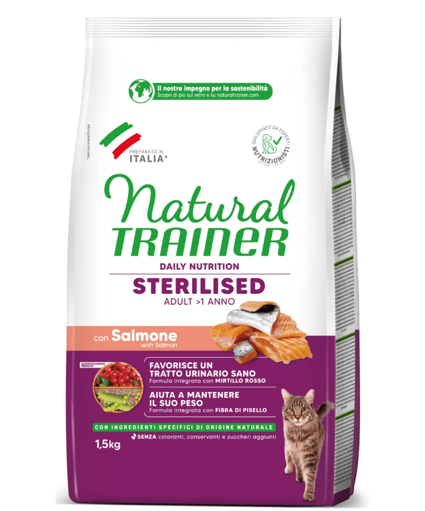 Trainer Natural per Gatto Adult Sterilised con Salmone da 1,5 Kg