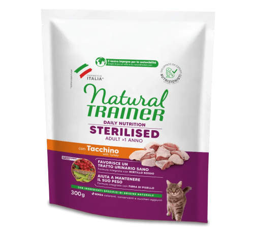 Trainer Natural per Gatto Adult Sterilised con Tacchino da 300 gr