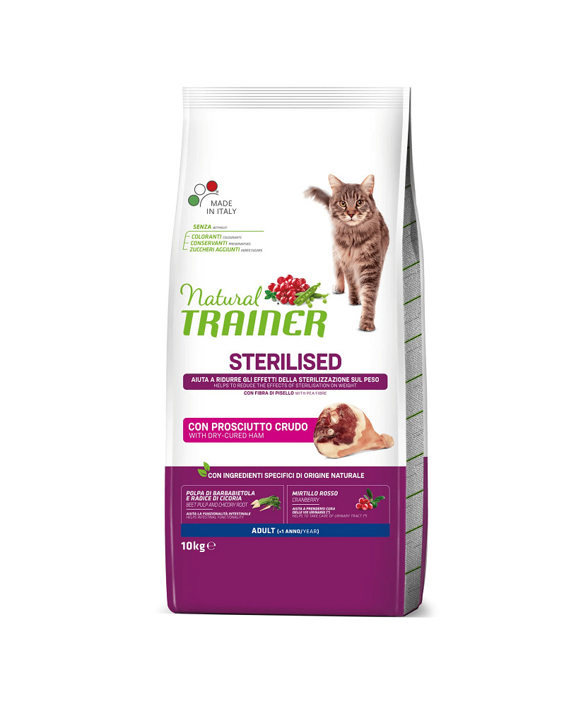Trainer Natural per Gatto Adult Sterilised con Prosciutto Crudo da 10 Kg
