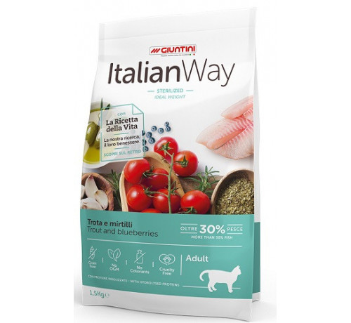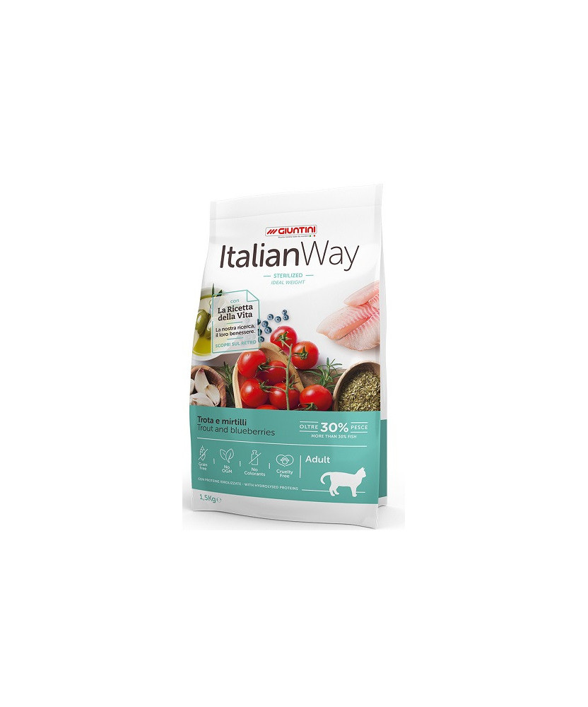 Italian Way Sterilized Ideal Weight per Gatti Adulti con Trota e Mirtilli da 8 Kg