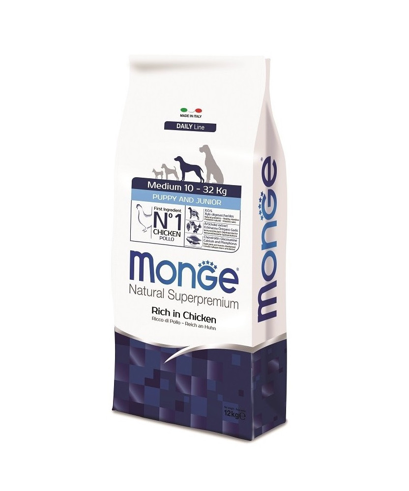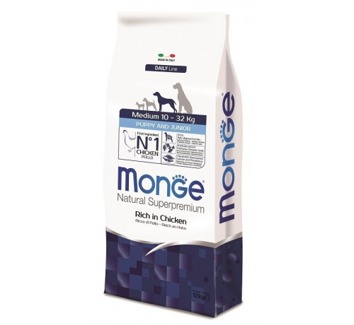 Monge Natural Superpremium per Cane Puppy & Junior Medium Ricco di Pollo da 12 Kg