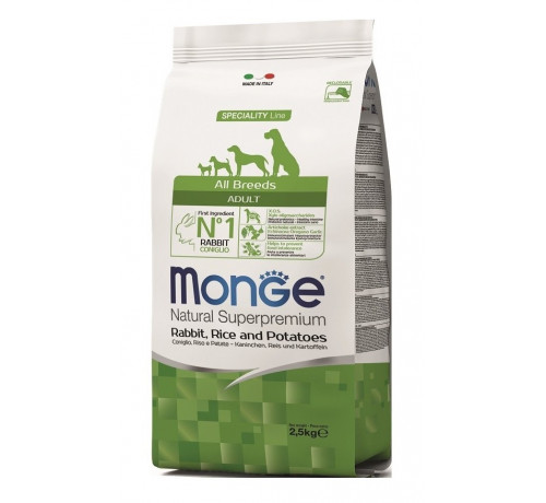 Monge Natural Superpremium per Cane Adult All Breeds con Coniglio Riso e Patate da 2,5 kg