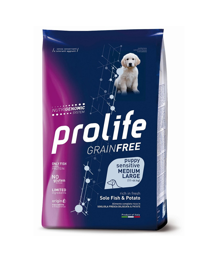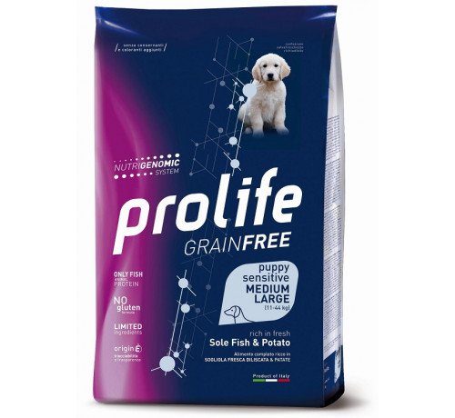 Prolife Grain Free per Cane Puppy Medium/Large con Sogliola e Patate da 10 Kg