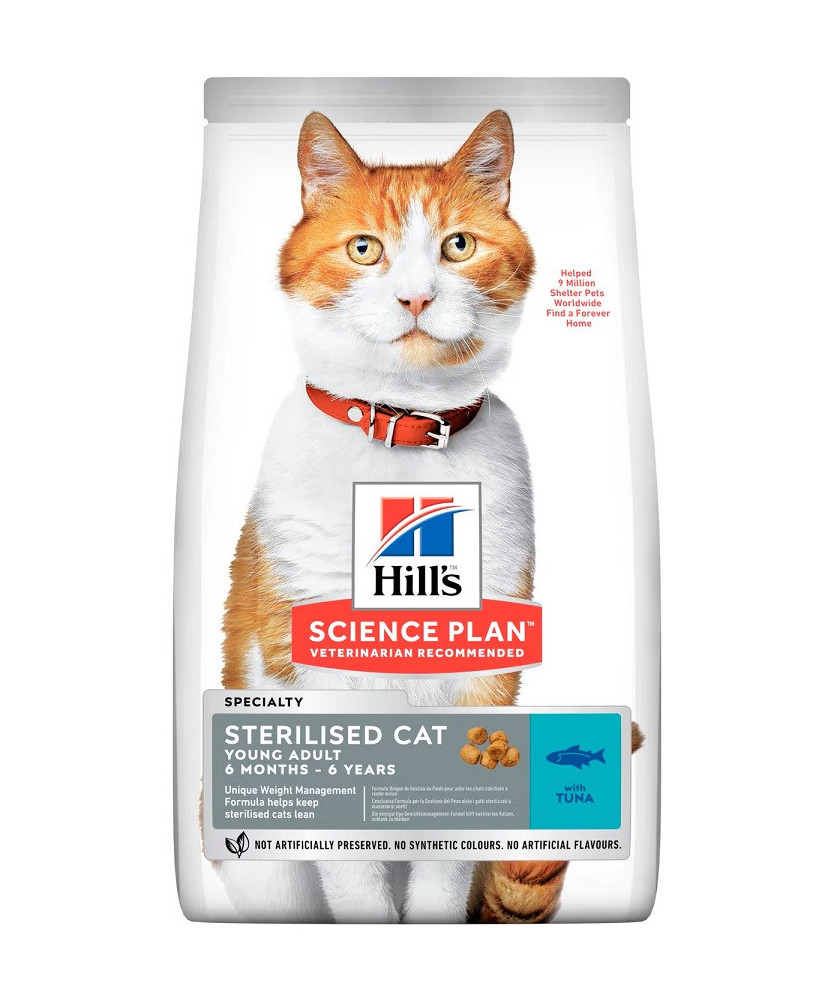 Hill's Science Plan Sterilized Cat Adult alimento secco per gatti contiene la Formula unica di gestione del Peso per aiutare i gatti sterilizzati a mantenersi magri. Realizzato con ingredienti di elevata qualità e facili da digerire.