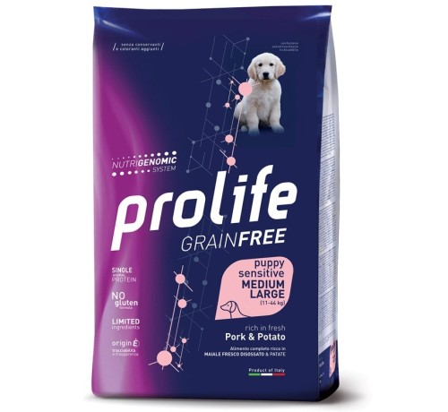 Prolife Grain free per Cani Puppy M/L con Maiale e Patate da 10 kg