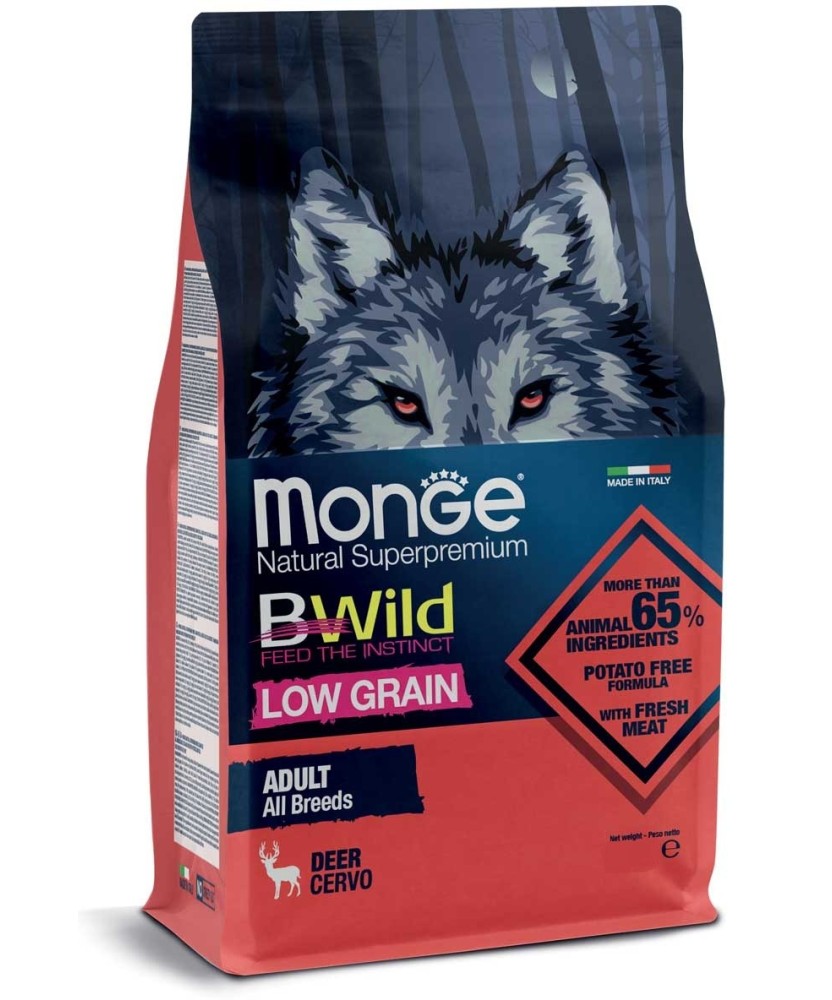 Monge Bwild Low Grain All Breeds Cane Adult Cervo è un alimento completo e bilanciato per cani adulti.