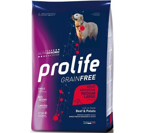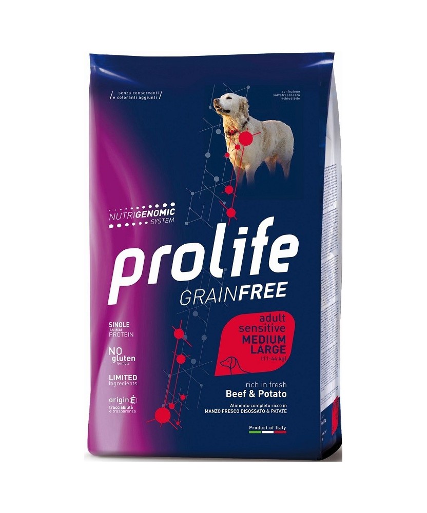 Prolife Dog Grain Free Sensitive con Manzo e Patate Medium/Large per Cani da 10 kg