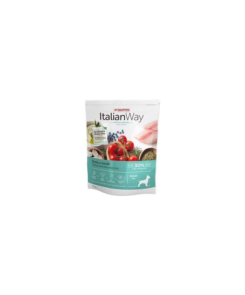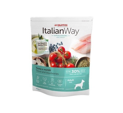 Italian Way Hypoallergenic Ideal Weight per Cani Adult Mini con Trota e Mirtilli da 1,5 Kg