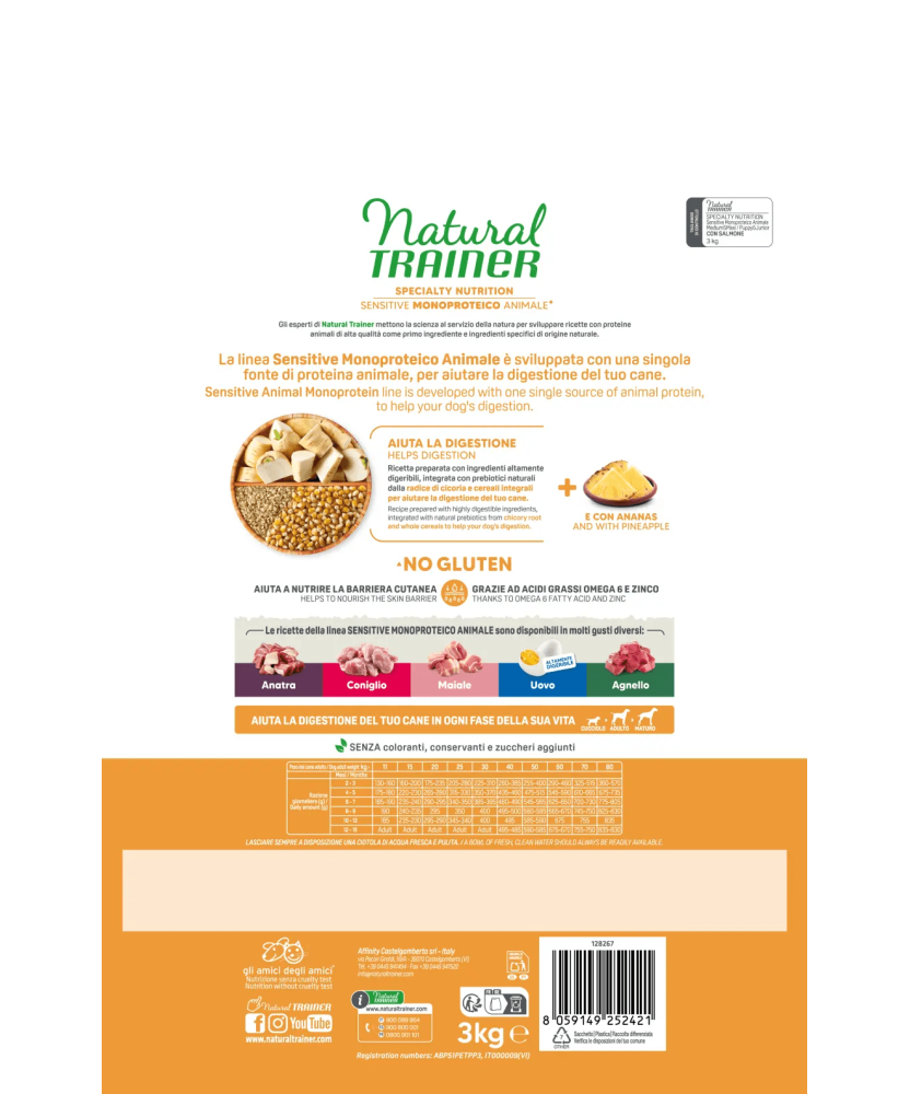 • Animal monoprotein formula Formulato con un’unica fonte di proteine animali. Può contenere tracce di altre proteine animali.