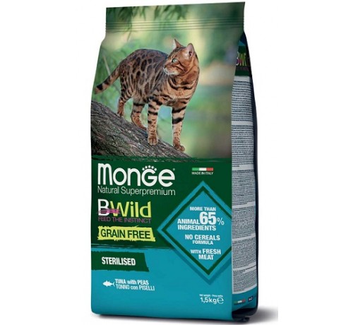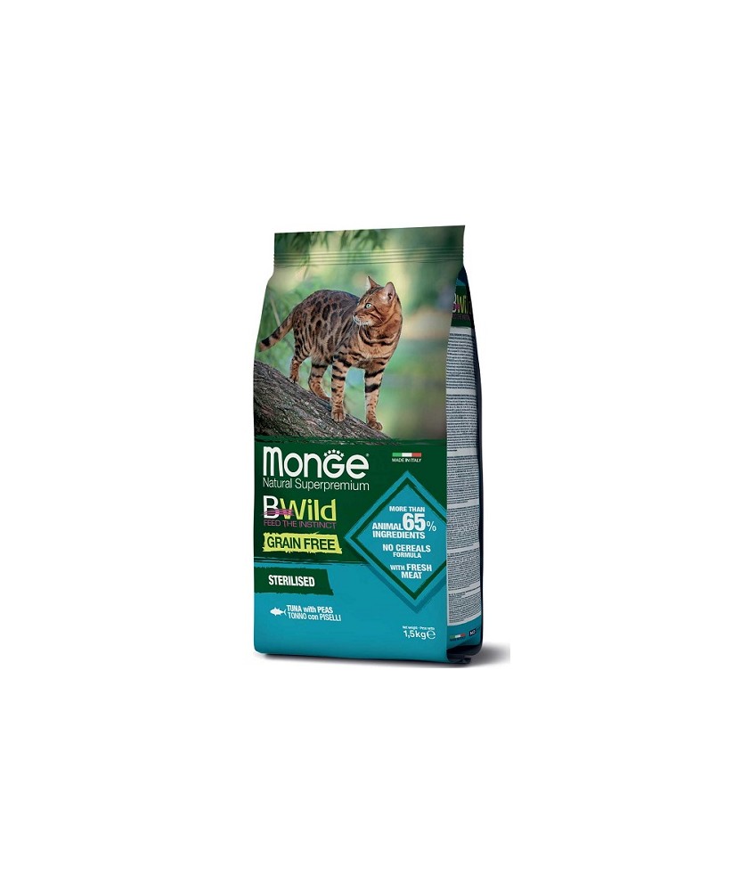 Monge Natural Superpremium BWild Grain Free per Gatti Sterilizzati con Tonno e Piselli da 1,5 Kg