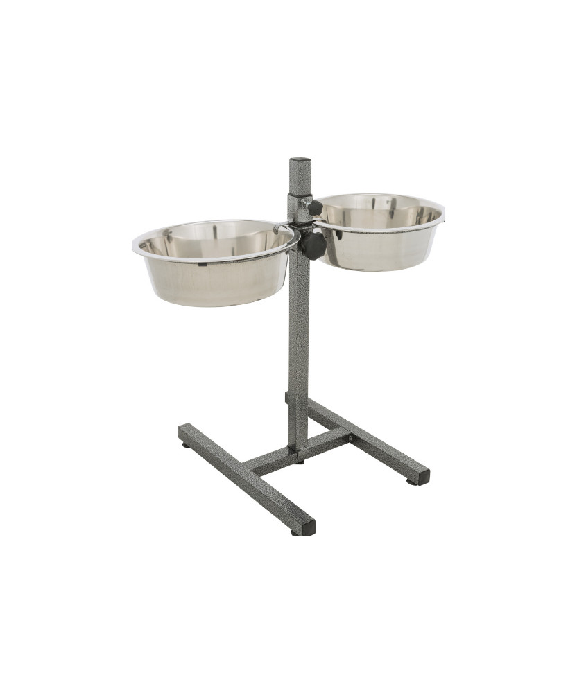 Aiuta il cane ad adottare una posizione corretta per una migliore digestione. con 2 ciotole in acciaio inox con piedistallo a forma di H, in metallo e verniciatura picchiettata altezza regolabile ciot ...