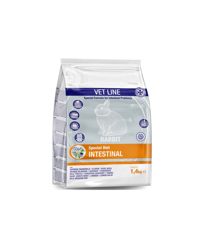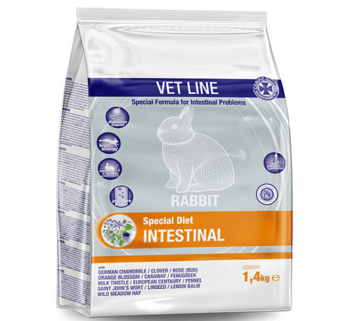 Cunipic Vet Line Intestinal for Rabbits è una formula specifica per conigli con problemi intestinali come diarrea, infiammazione intestinale, maldigestion, malassorbimento, tiflite, ileus, convalesce ...