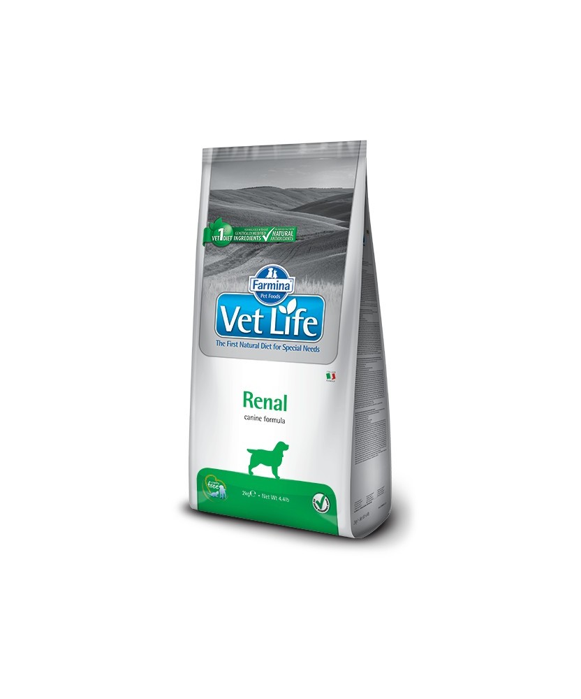 Farmina Vet Life Renal è un alimento dietetico completo per cani per il supporto della funzione renale in casi di insufficienza renale cronica o temporanea.