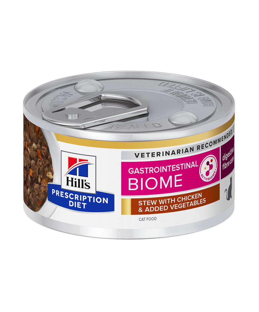 Un passo avanti per la loro vita migliore. Hill's PRESCRIPTION DIET Gastrointestinal Biome Digestive Care Spezzatino per gatti con pollo e verdure è stato appositamente formulato dai nutrizionisti e dai veterinari Hill's per supportare la salute dell'apparato digerente del tuo gatto.