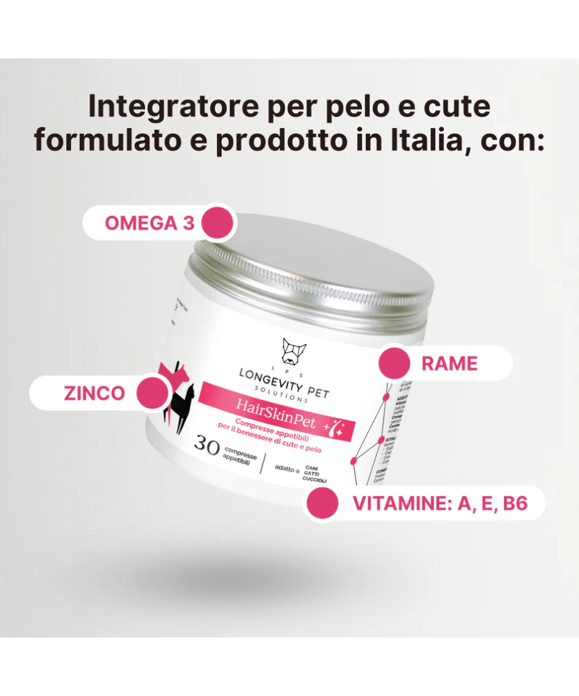 Longevity Pet HairSkinPet per Cani e Gatti da 30 cpr