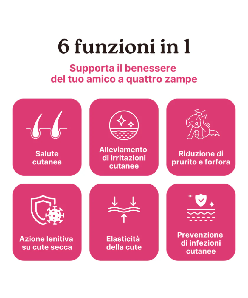 - Contiene Omega 3, vitamine e minerali per la salute della cute