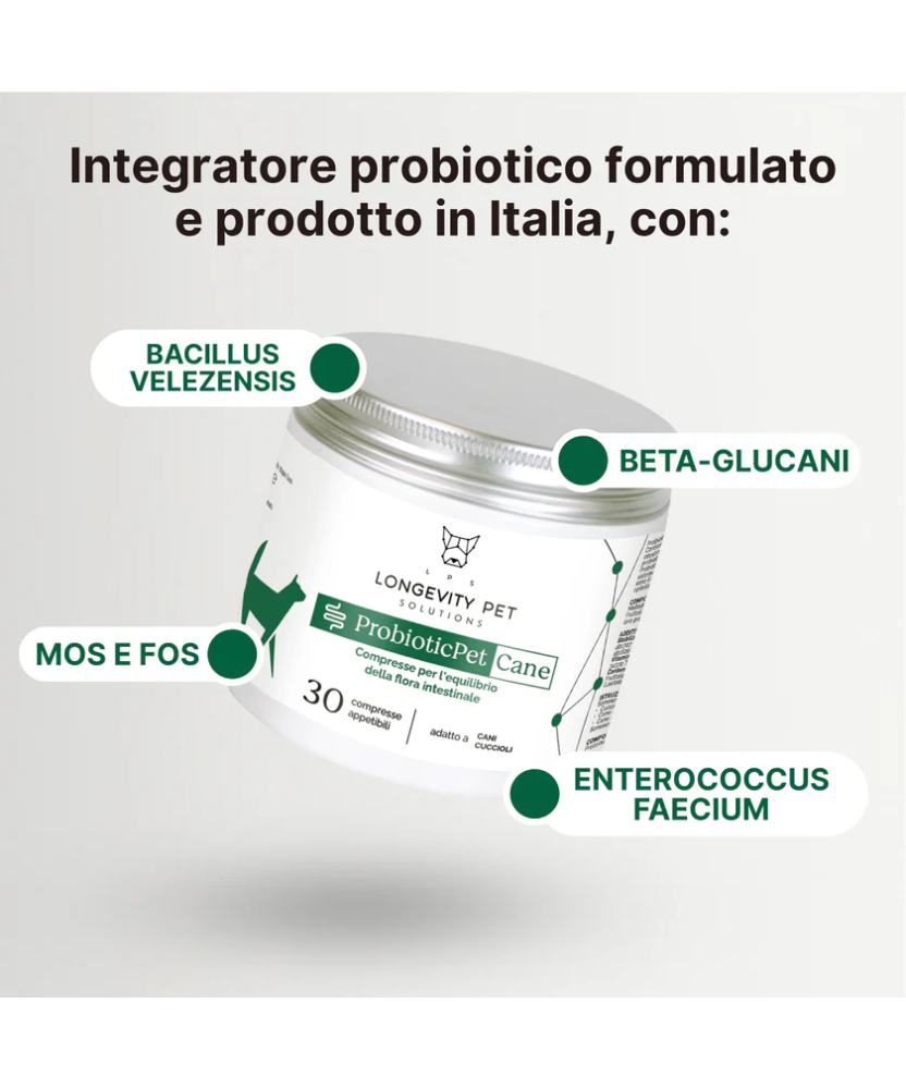 - Enterococcus Faecium e Bacillus Velezensis probiotici registrati per cani