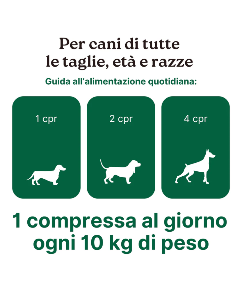 - Cucciolo e Cane di piccola taglia (<10kg): 1 compressa