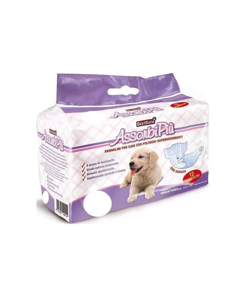 BestBone AssorbiPiù Pannolini per Cani con polimeri superassorbenti 80 cm Extra Large da 12pz