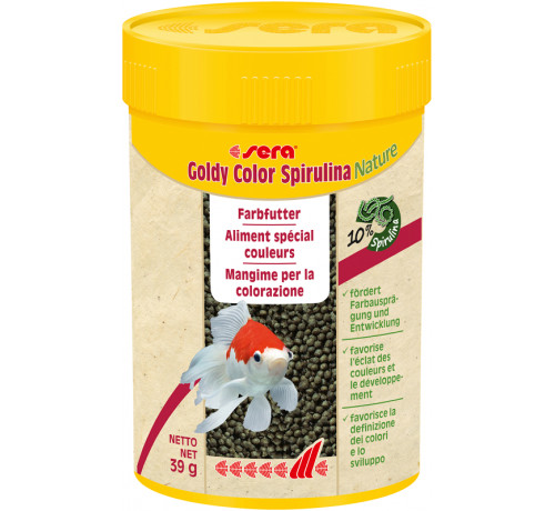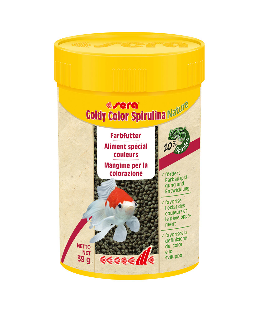 - Sera goldy color spirulina è il mangime per i colori,nutriente e di facile digestione adatto per soddisfare le esigenze di tutte le preziose forme di allevamento del pesce rosso.
