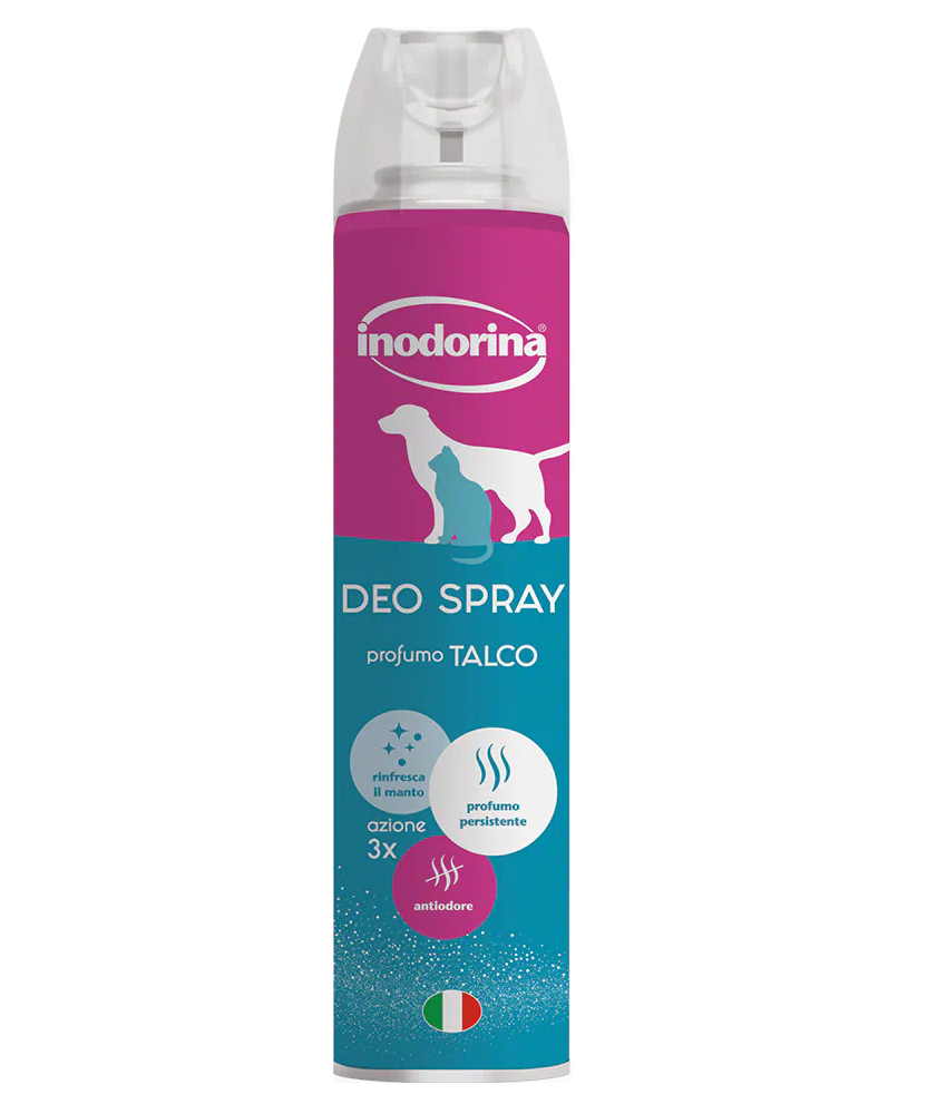 DESCRIZIONE: Inodorina Deo Spray è la soluzione rapida e ideale per rinfrescare e donare igiene al manto del tuo cane. Grazie alla sua formulazione specifica, neutralizza ogni odore sgradevole e deodora proteggendo il pelo dagli agenti atmosferici. Inodorina Deo Spray dona al manto grande lucentezza ed è una ideale rifinitura dopo la toelettatura.
