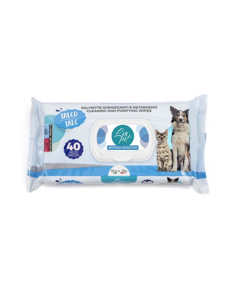 LeoPet salviette detergenti per cani e gatti con Talco da 40 pz