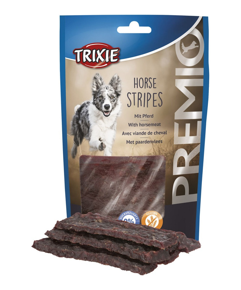 Carne di cavallo (86 %), amido di mais, sottoprodotti di origine vegetale, sorbitolo, estratti di proteine vegetali, minerali, farina di riso | senza glutine | Conservare in luogo fresco e asciutto.