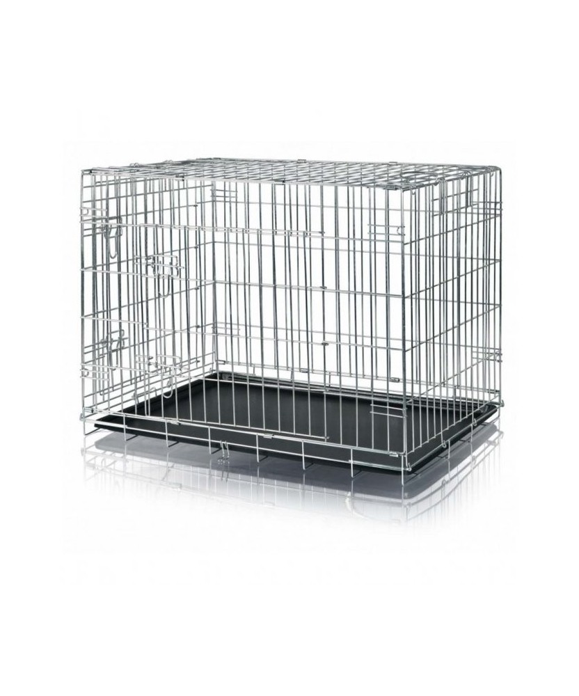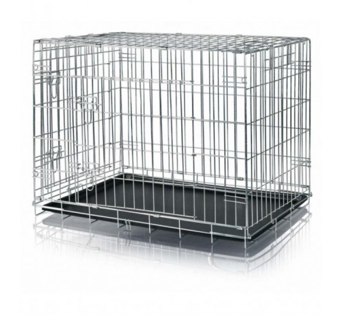 Gabbia per il trasporto di cani, indicata per il trasporto in auto. Con doppia porta e fondo estraibile antiscivolo.